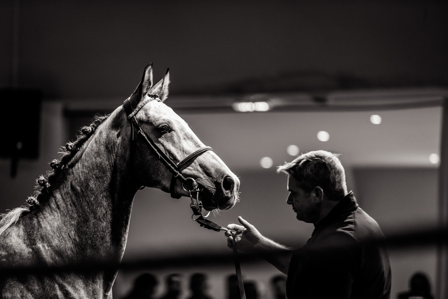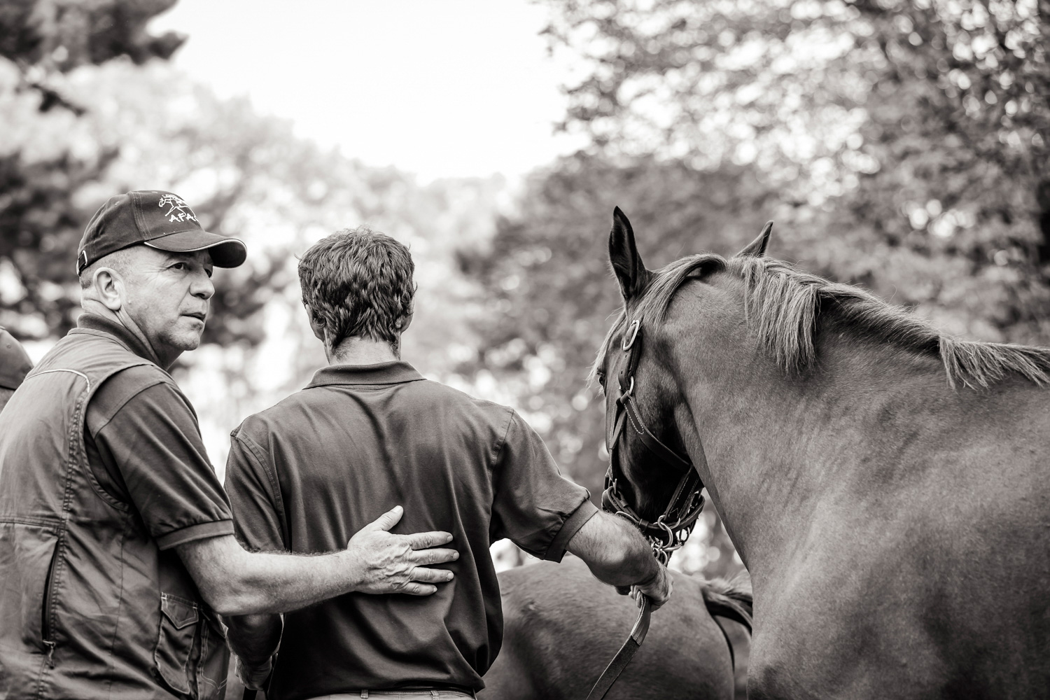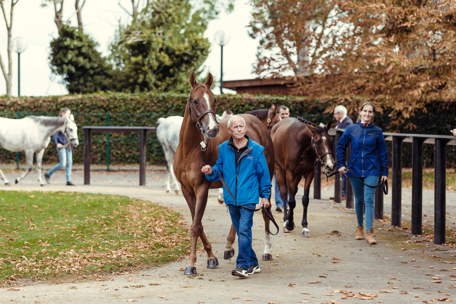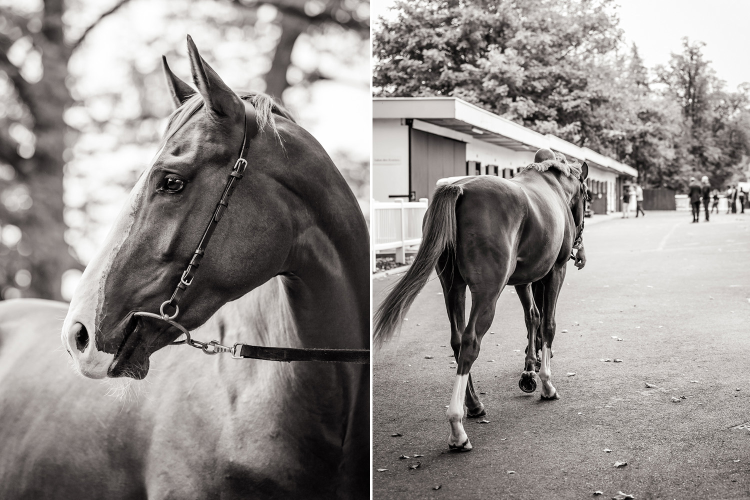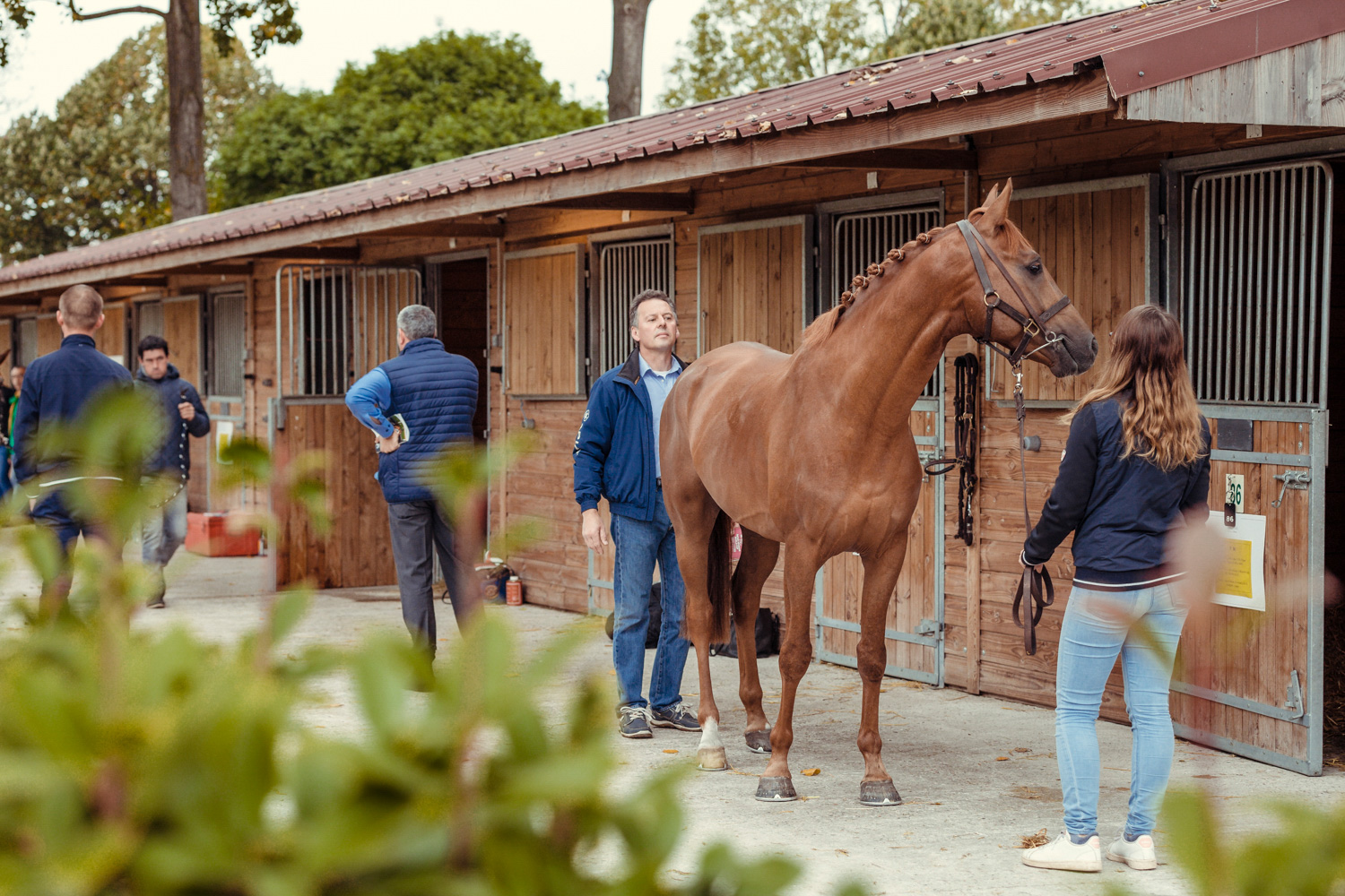 A première vue tout semble paisible. Catalogue sous le bras, stylo autour du cou, téléphone en main, un ballet bien organisé entre éleveurs et futurs acheteurs s’organisent devant moi. L’ambiance est sérieuse et studieuse. Tout à coup, un potentiel acheteur fait signe à la personne responsable du cheval. Celui-ci lui demande si il peut le voir dehors, afin d’étudier les jambes (du cheval bien sûr) et de le voir marcher. Une fois chose faite, il inscrit ses remarques dans son catalogue et va voir le ou les suivants qui ont capté son attention lors des galops. ambiance, relation, détail, une partie de mon travail photographique s’articule autour de cet axe.