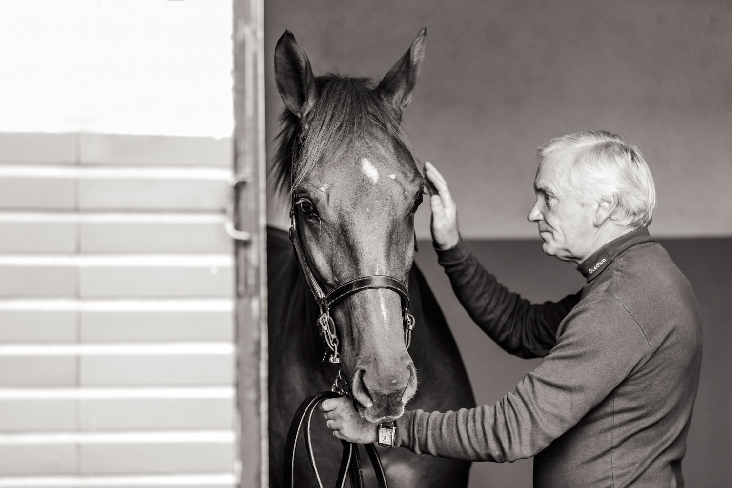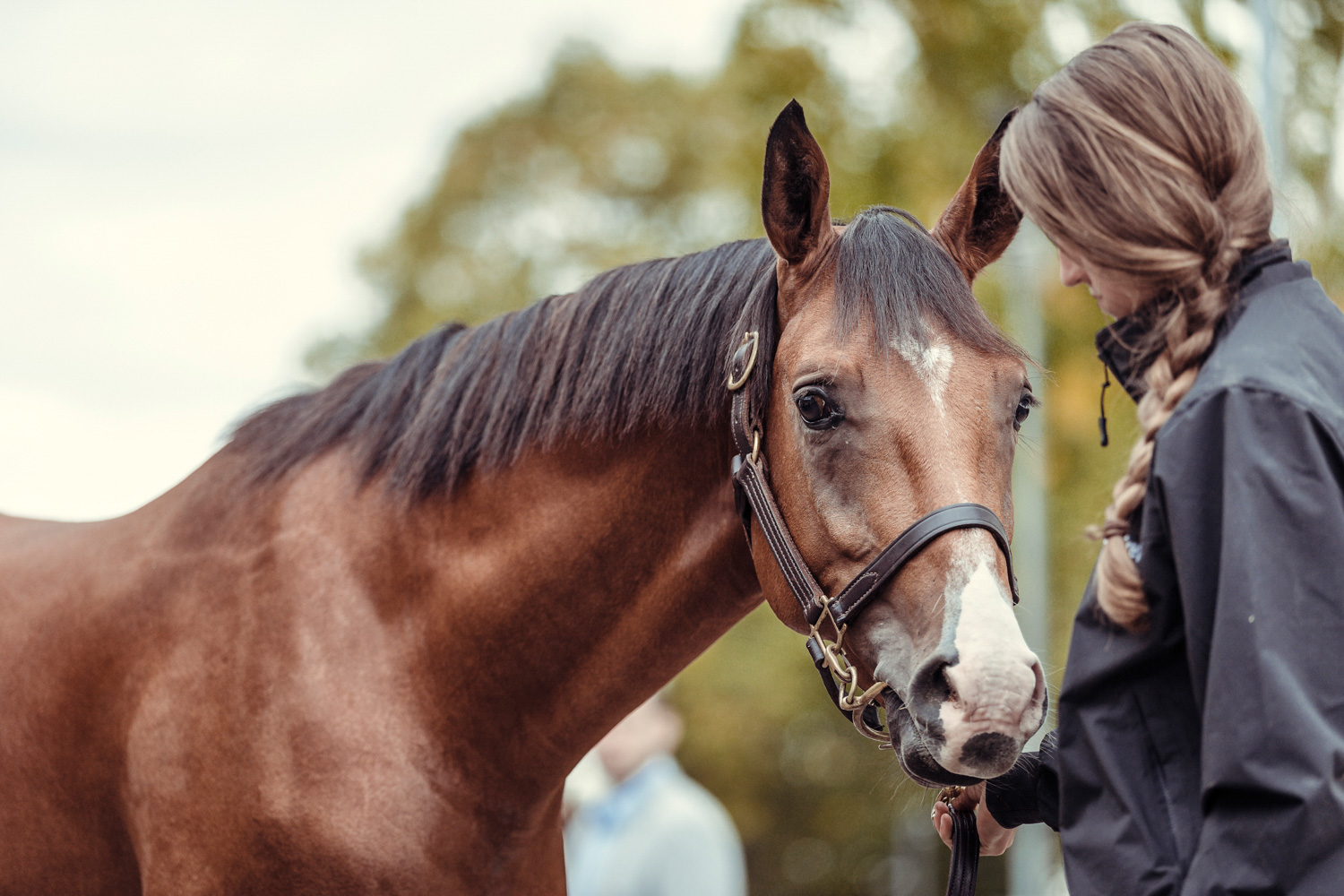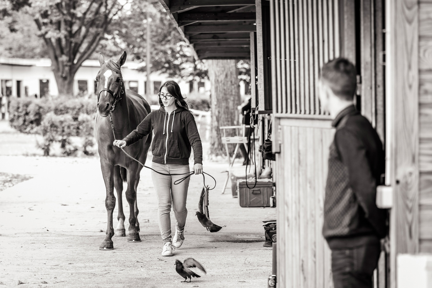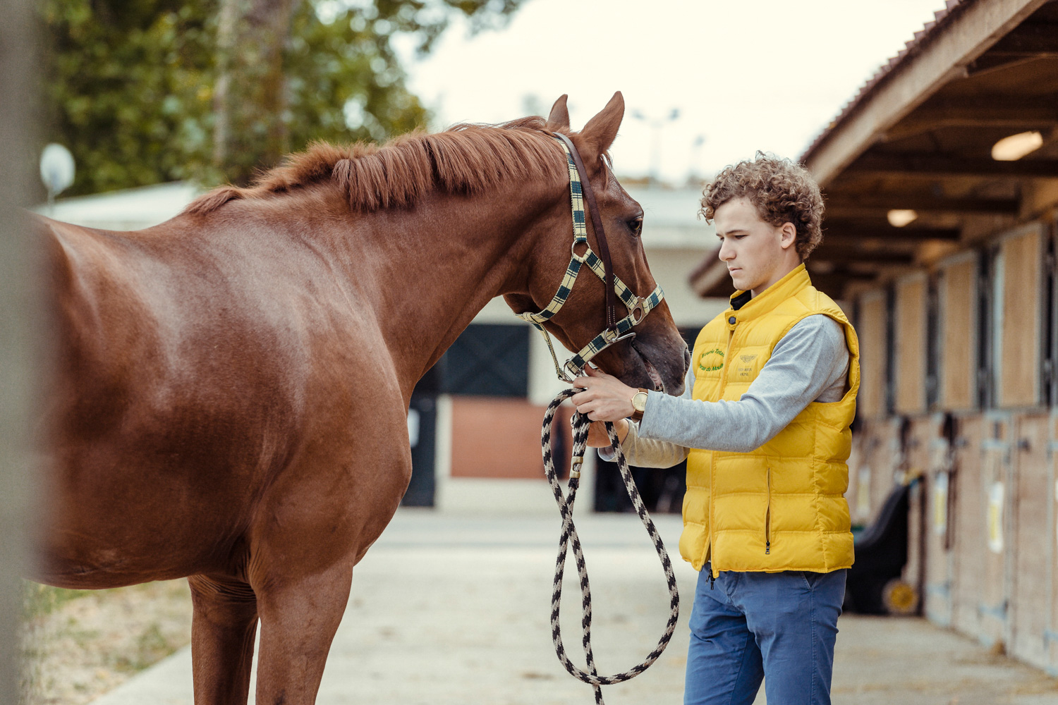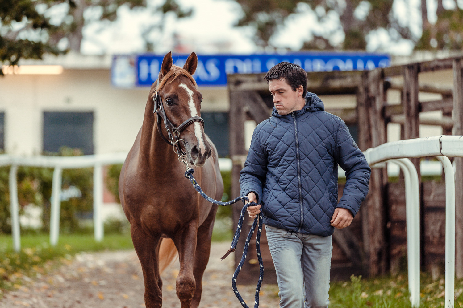 A première vue tout semble paisible. Catalogue sous le bras, stylo autour du cou, téléphone en main, un ballet bien organisé entre éleveurs et futurs acheteurs s’organisent devant moi. L’ambiance est sérieuse et studieuse. Tout à coup, un potentiel acheteur fait signe à la personne responsable du cheval. Celui-ci lui demande si il peut le voir dehors, afin d’étudier les jambes (du cheval bien sûr) et de le voir marcher. Une fois chose faite, il inscrit ses remarques dans son catalogue et va voir le ou les suivants qui ont capté son attention lors des galops. ambiance, relation, détail, une partie de mon travail photographique s’articule autour de cet axe.