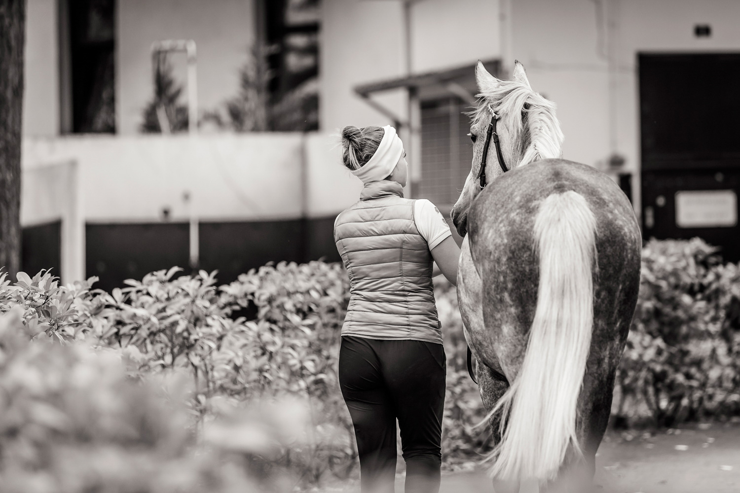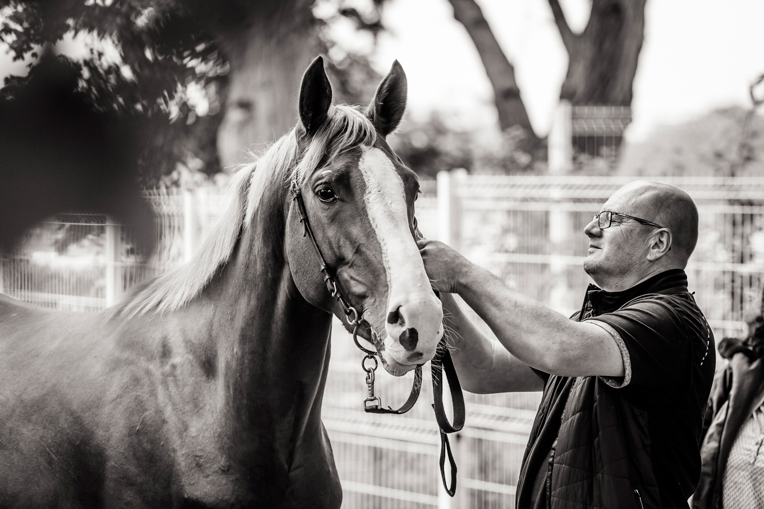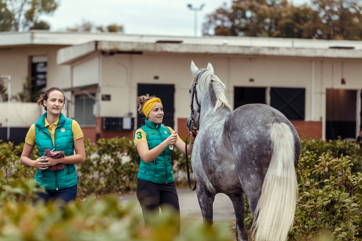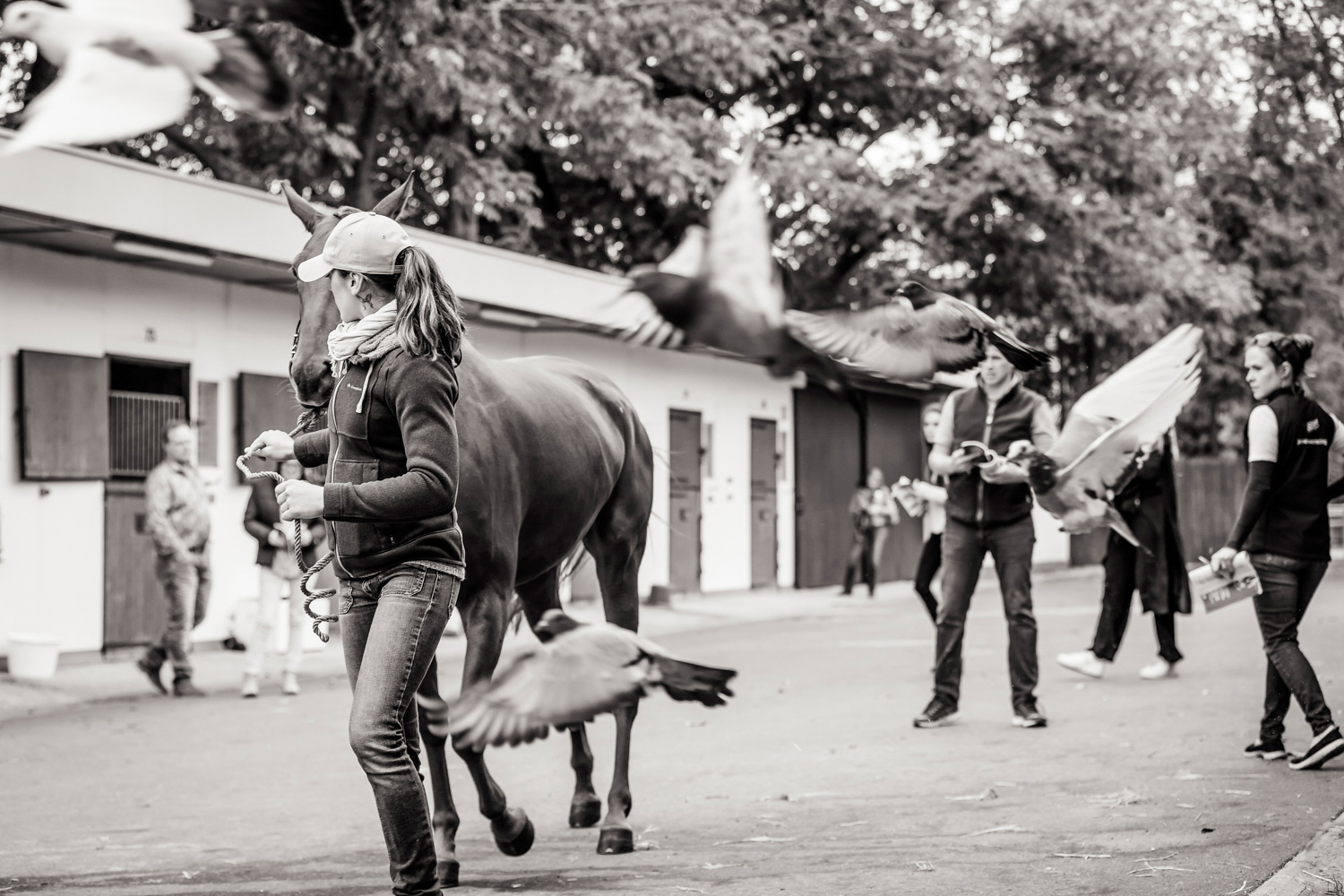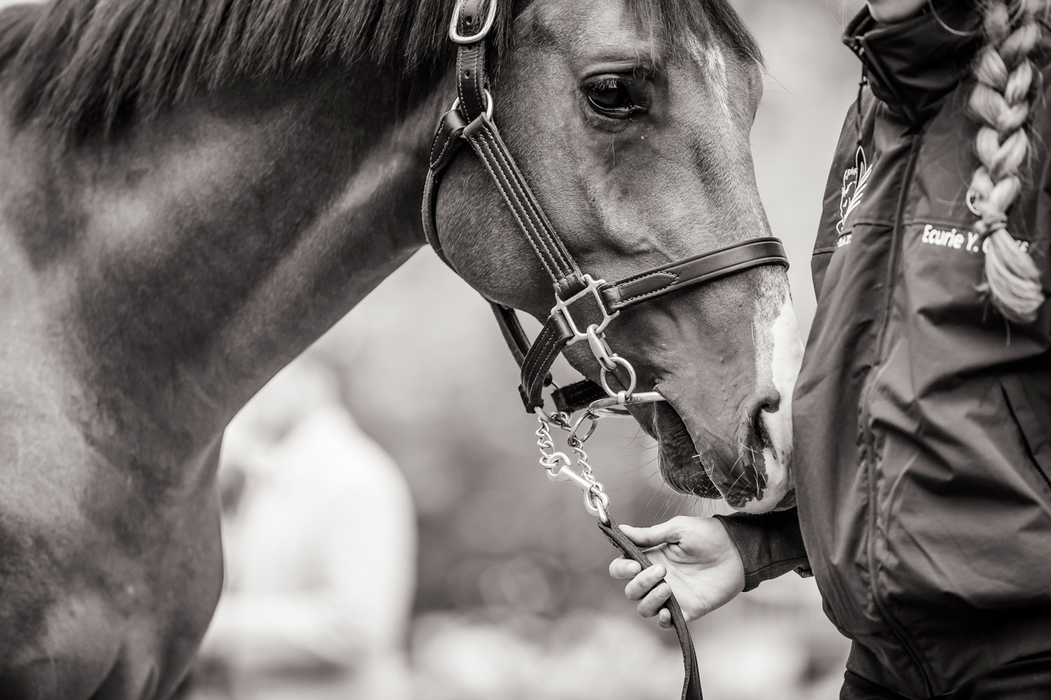 A première vue tout semble paisible. Catalogue sous le bras, stylo autour du cou, téléphone en main, un ballet bien organisé entre éleveurs et futurs acheteurs s’organisent devant moi. L’ambiance est sérieuse et studieuse. Tout à coup, un potentiel acheteur fait signe à la personne responsable du cheval. Celui-ci lui demande si il peut le voir dehors, afin d’étudier les jambes (du cheval bien sûr) et de le voir marcher. Une fois chose faite, il inscrit ses remarques dans son catalogue et va voir le ou les suivants qui ont capté son attention lors des galops. ambiance, relation, détail, une partie de mon travail photographique s’articule autour de cet axe.