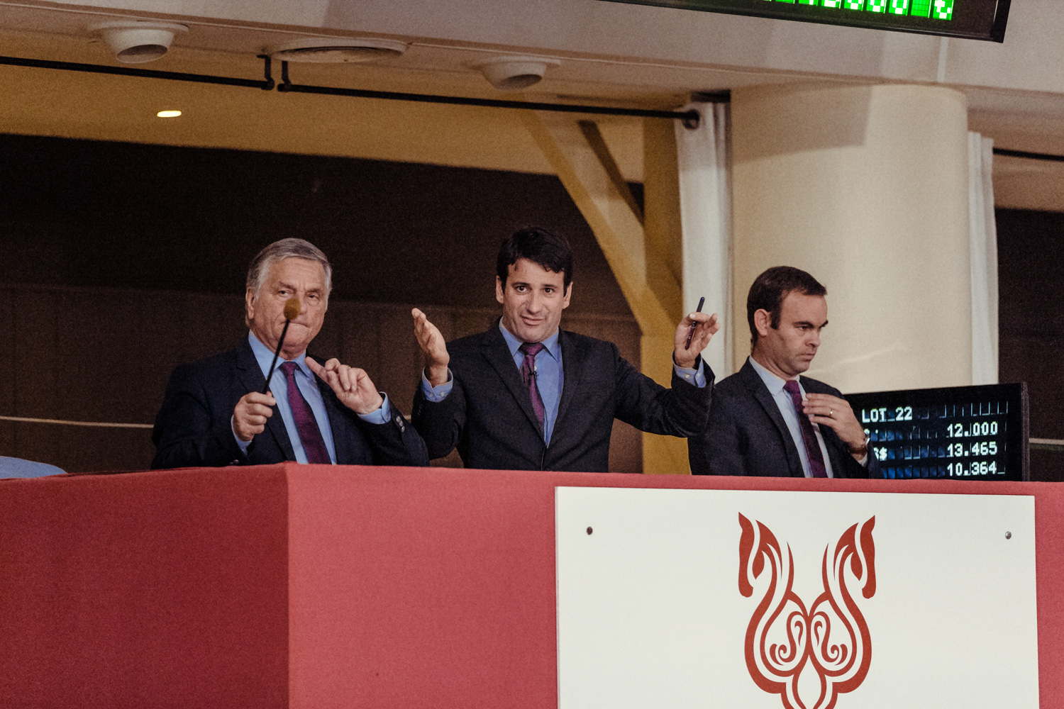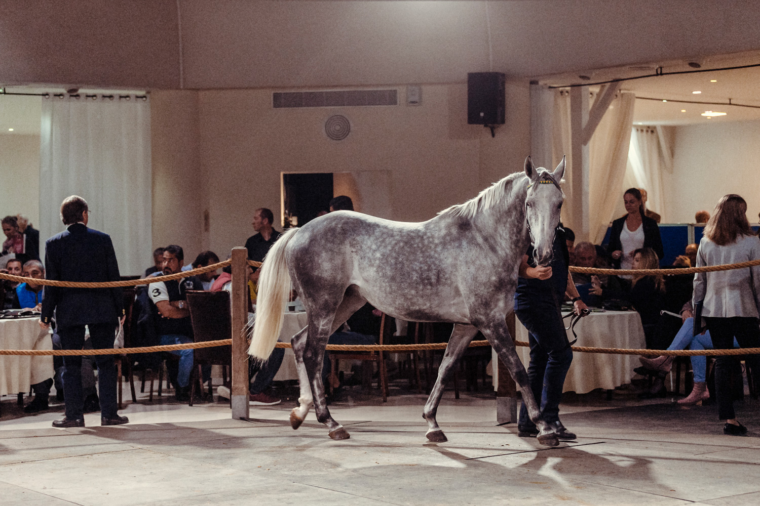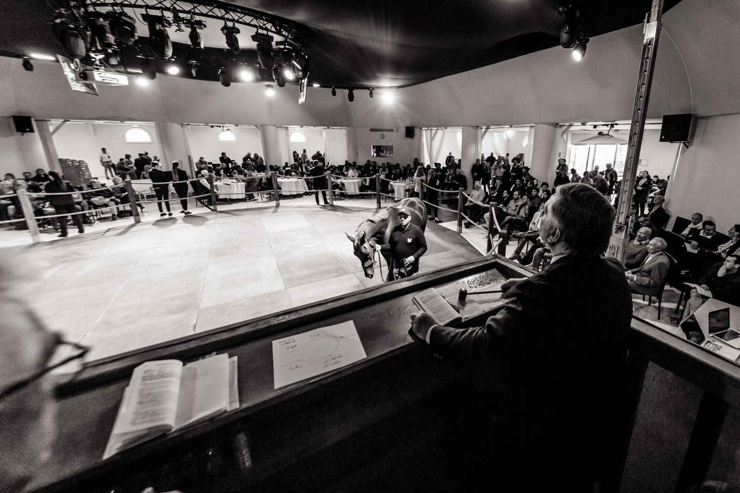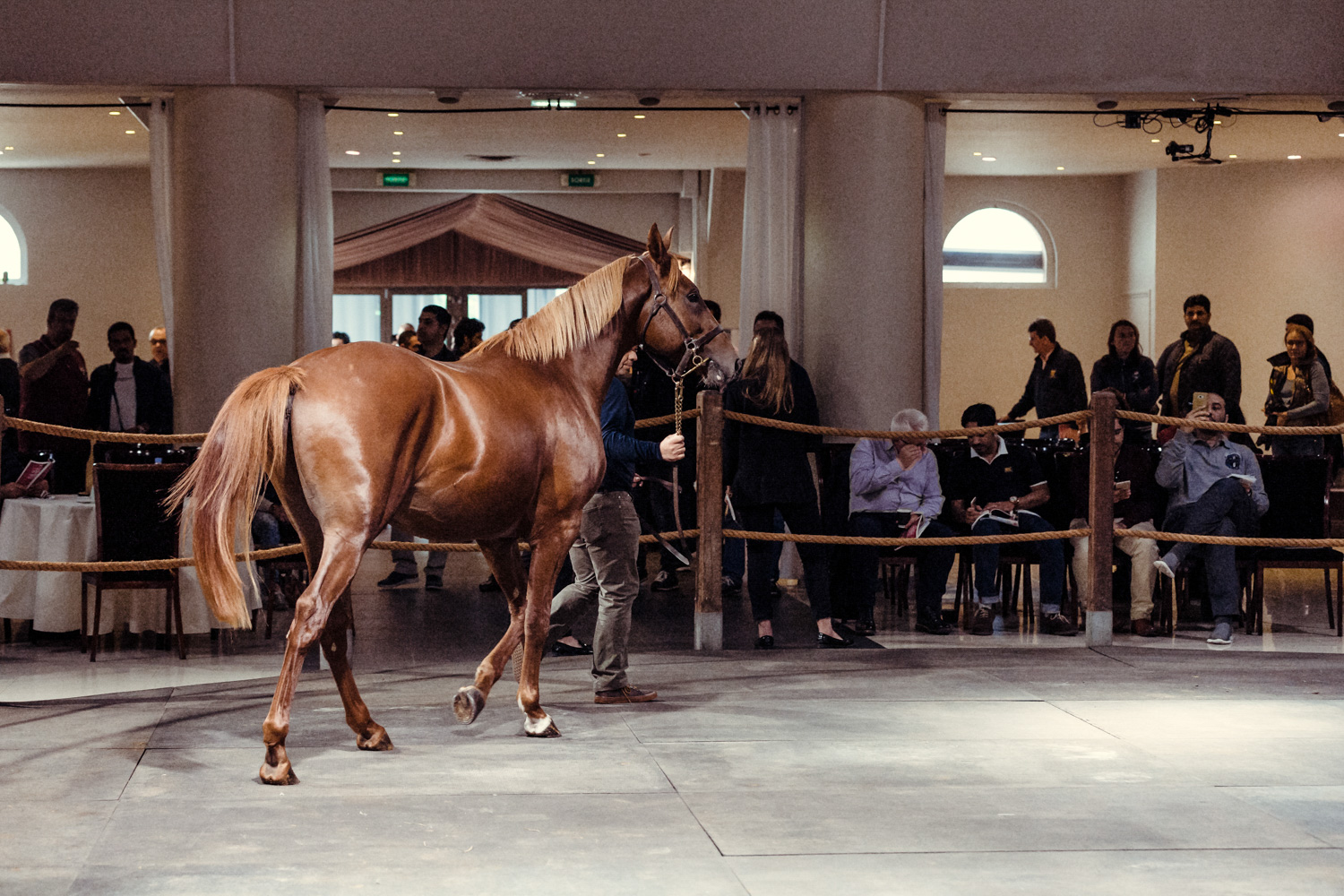 Enfin les ventes débutent. Les chevaux vont marcher environ 30 minutes, dans un rond à cet effet, devant la salle des ventes, et passeront ensuite, un par un, dans le ring. Une fois bien installé dans leur fauteuil, ils admirent, étudient, analysent chaque cheval. Mais surtout, surtout, ne bougez pas vos mains, votre catalogue ou votre casquette !. Vous risquez de vous retrouver impliqué involontairement dans l’achat d’un cheval. Ce qui pourrait être assez ennuyeux.