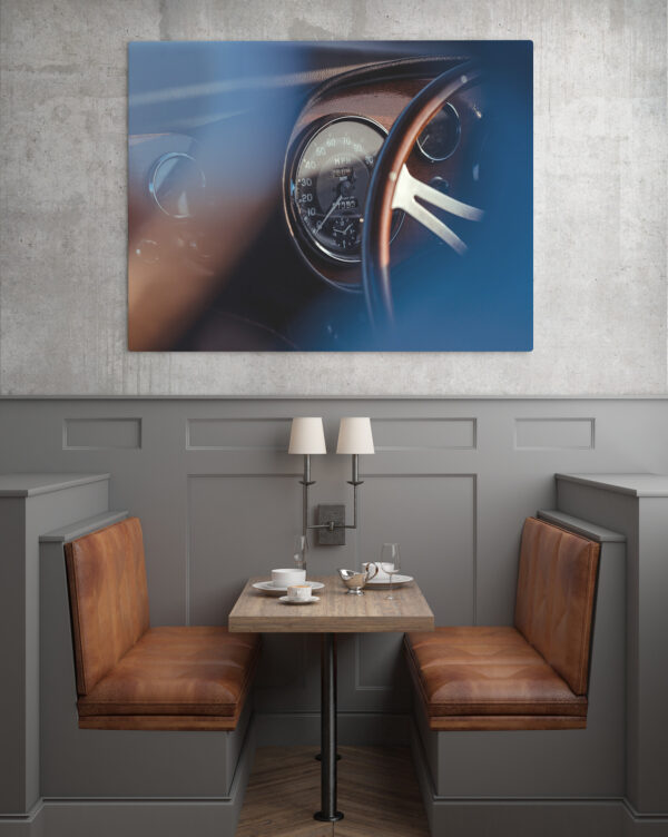 Evasion mécanique… le rêve de se laisser transporter, laisser l’aiguille s’envoler, cheveux aux vents… cette photographie vous donnera l’envie de vous évader sur des notes de bois et cuir.