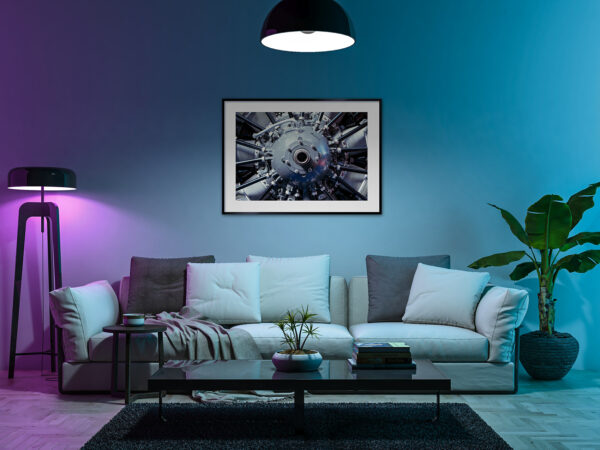 Donnez l’impression d’avoir un bijou de technologie issue d’un moteur d’avion tout en étant dans votre intérieur grâce à cette photographie. Cette photographie peux aussi devenir en trompe l’œil au style urbex dans votre entreprise ou vos locaux, elle apportera un renouveau à la décoration de votre salon ou de votre chambre et un style déco unique également.